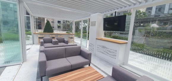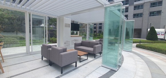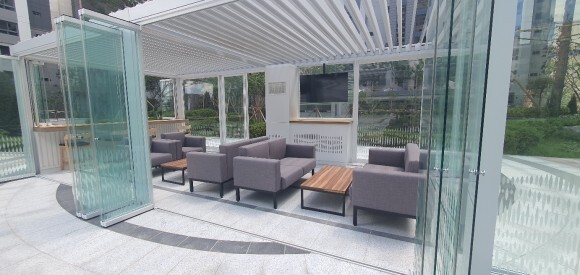 입주민들 편의를 위해 모던하면서 고급스러운 유럽형 시스템 파고라를 도입해